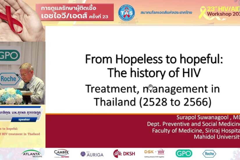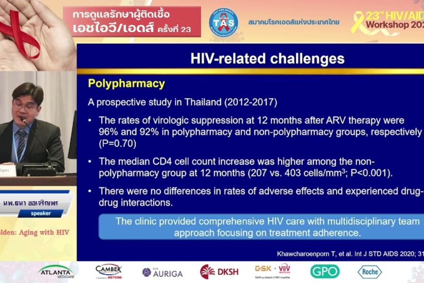 Staying golden: Aging with HIV หัวข้อบรรยาย: Staying golden: Aging with HIV บรรยายโดย: ศ.นพ.ธนา ขอเจริญพร งานประชุมการดูแลรักษาผู้ติดเชื้อเอชไอวี/เอดส์ ครั้งที่ 23 (HIV/AID Workshop 2024) 22-23 สิงหาคม 2567 ห้องแกรนด์บอลรูม เอ บี และซี ชั้น 1 โรงแรมแมนดารินกรุงเทพ สามย่าน