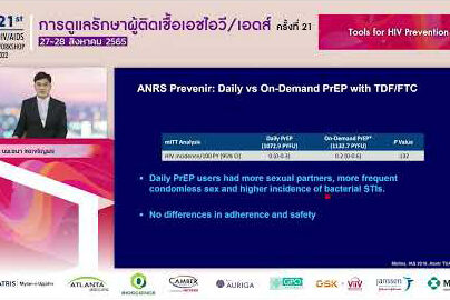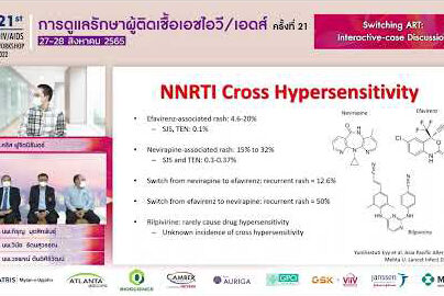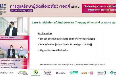 Switching ART: Interactive-case Discussion หัวข้อบรรยาย: Switching ART: Interactive-case Discussion บรรยายโดย: พญ.อัญชลี อวิหิงสานนท์ รศ. นพ.วินัย รัตนสุวรรณ รศ. นพ.วรพจน์ ตันติศิริวัฒน์ ร.ต.คริส ฟูจิตนิรันดร์ (ผู้ดำเนินการบรรยาย) เอกสารงานประชุม: ดาวน์โหลด งานประชุมการดูแลรักษาผู้ติดเชื้อเอชไอวี/เอดส์ ครั้งที่ 21 (HIV/AID Workshop 2022) วันที่ 27-28 สิงหาคม 2565 Virtual Conference จัดโดย สมาคมโรคเอดส์แห่งประเทศไทย