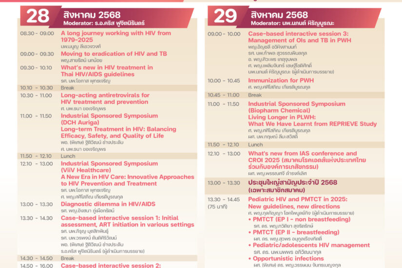 อบรมเชิงปฏิบัติการ การดูแลรักษาผู้ติดเชื้อเอชไอวี/เอดส์ ครั้งที่ 24 24th HIV/AIDS Workshop 2025 Webinars / Resources