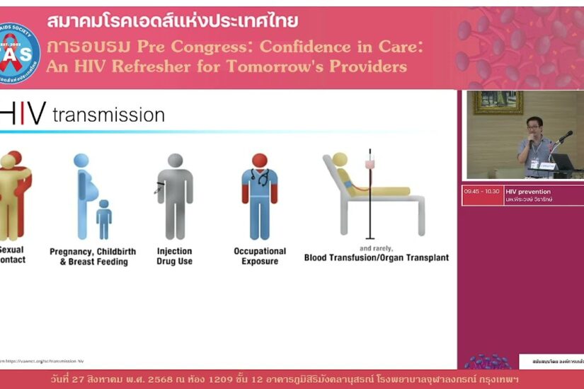 HIV prevention หัวข้อบรรยาย: HIV prevention บรรยายโดย: นพ.พีระวงษ์ วีรารักษ์ การอบรม Pre Congress: Confidence in Care: An HIV Refresher for Tomorrow’s Providers 27 สิงหาคม 2568 ห้อง 1209 อาคารภูมิสิริมังคลานุสรณ์ โรงพยาบาลจุฬาลงกรณ์