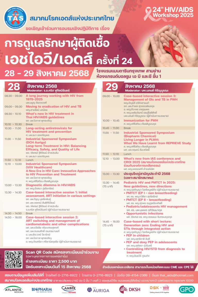 อบรมเชิงปฏิบัติการ การดูแลรักษาผู้ติดเชื้อเอชไอวี/เอดส์ ครั้งที่ 24