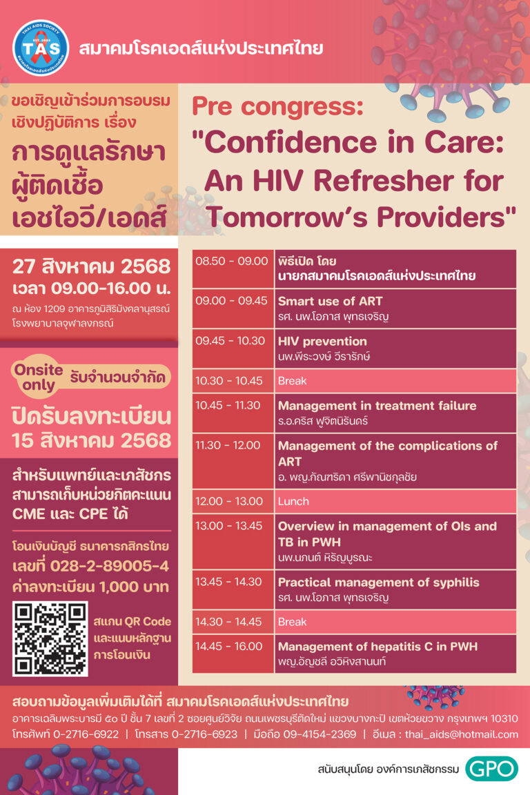 อบรมเชิงปฏิบัติการ การดูแลรักษาผู้ติดเชื้อเอชไอวี/เอดส์